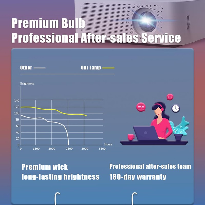 - 【High quality wick】: Adopt new-generation high-quality and Explosion-proof projector lamp wick. Has longer lifetime and only slight decay of lamp brightness after long time use.
