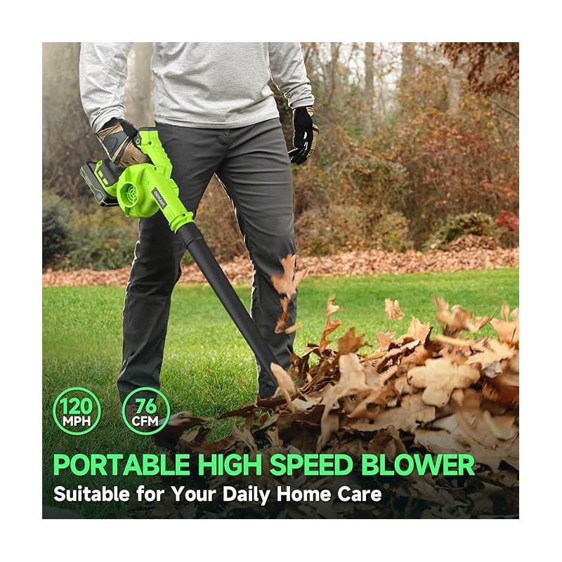 Turbo Power: Advanced turbo motor delivers 120MPH, 76CFM at 16000 RPM—perfect for clearing dust, debris, and leaves fast.