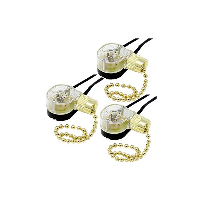 Pull Chain Switch Zing Ear ZE-109 Ceiling Fan Switch Ceiling Fan Light Lamp Replacement 3 Pack Brass