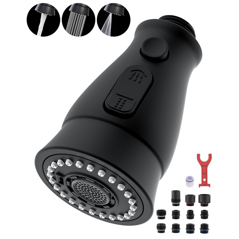 Pull Down Spray Head Replacement for Kitchen Faucet, 3 Modes Kitchen Sink Faucet Sprayer Head Nozzle Spout with 11 Adapters, Matte Black