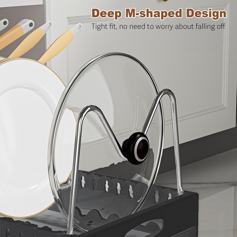 - 【Customizable & Versatile Kitchen Storage】 It's time to revamp your kitchen organization and storage for lids, cutting boards, muffin pans, and more! If you want to organize 6"-12" lids or pans in a step, this rack is your ultimate solution. By using separators, you can create custom spaces to accommodate them all at once.