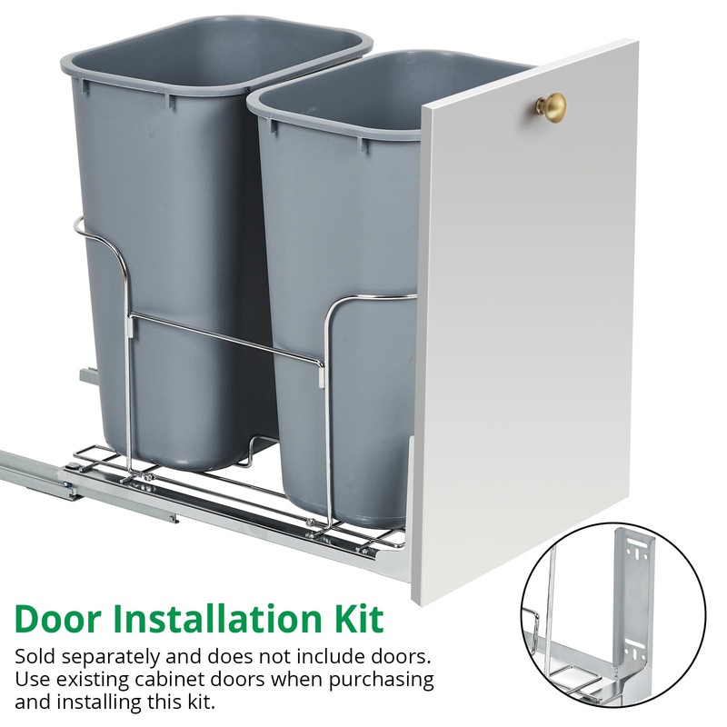 - Dual 25 QT Bins for Convenience: Manage kitchen waste and recycling with ease using the double trash can system. The large capacity cabinet trash can keeps garbage and recyclables separated for a cleaner, more organized kitchen environment