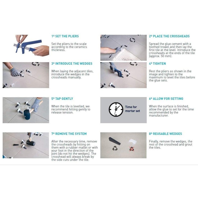 - The system ensures flatness between tiles and avoids movement during grout setting