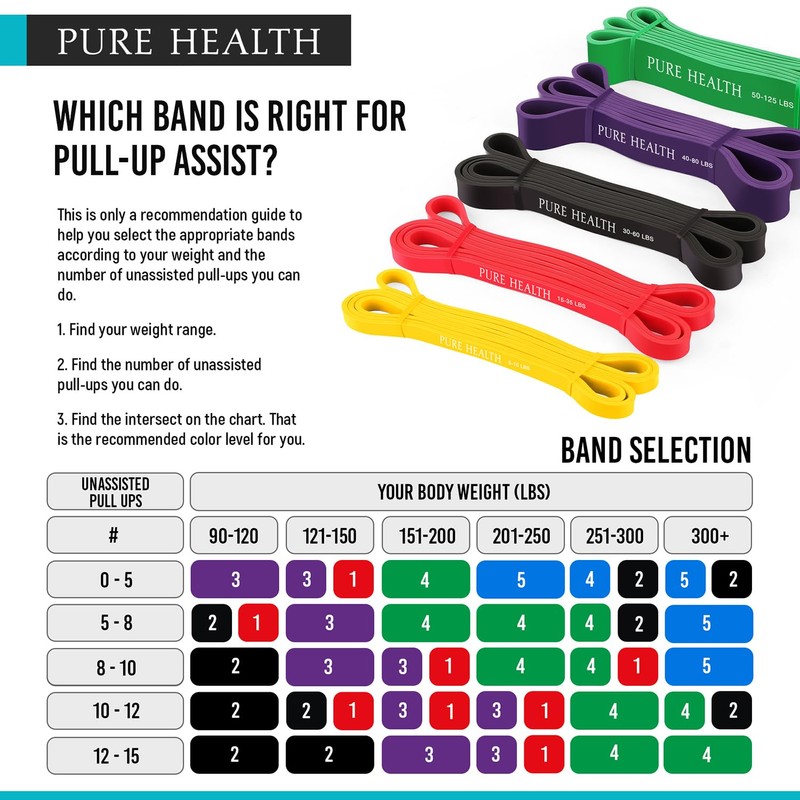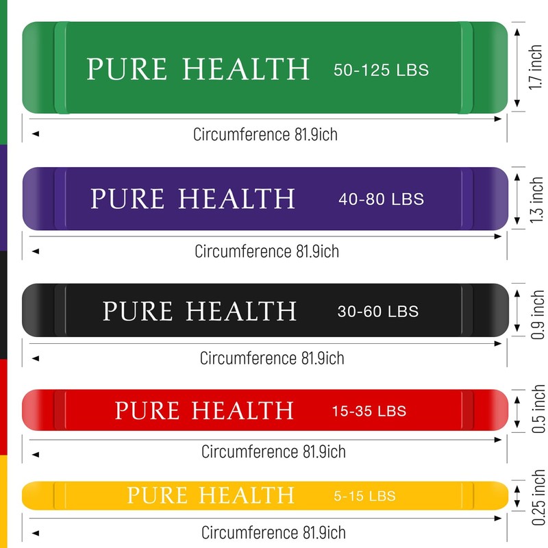- Natural and Durable: Our pull up assistance bands are made of 100% natural latex, It make Pure Health resistance bands soft and odourless. The resistance bands can remain high elastic after years of training and exercising