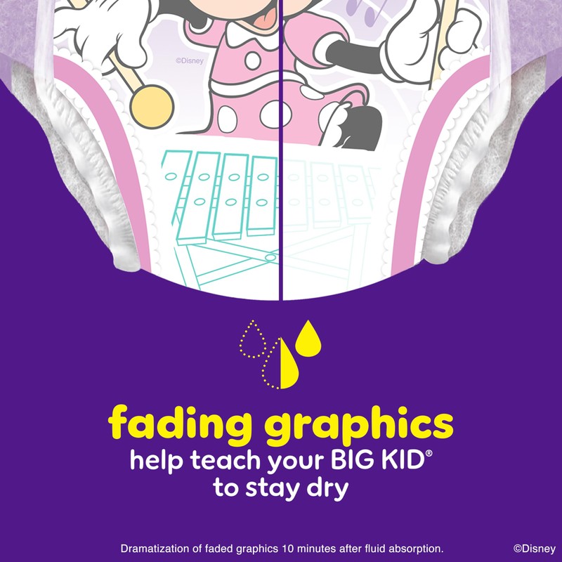 • Fun music designs feature exclusive Minnie Mouse graphics that fade when wet to help your child learn potty training & motivate to stay dry