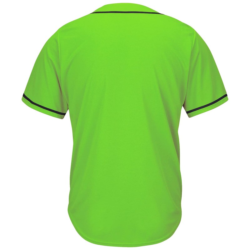 Pullonsy Solid Plain Baseball Jersey T-Shirts for Men Full Button Down Streetwear,Black Stripe Lime Green Jersey,Size XL