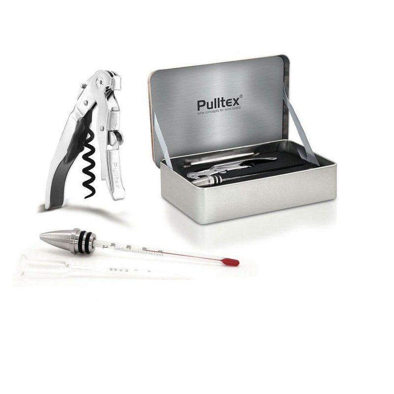 - he Pullparrot corkscrews retractable double lever allows pulling the corks out effortlessly in two steps, without breaking or damaging them and in a completely vertical way... Total effectiveness demonstrated for all kinds of corks, even the longest ones. This wine set also includes a wine thermometer and alcoholmeter for quality service. In addition the Pullparrot corkscrew was awarded with the 1st price at the Gevrey-Chambertin corkscrew contest in France.