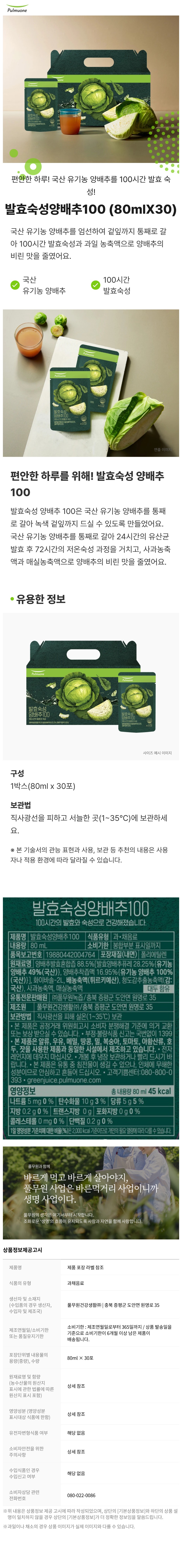 Pulmuone Fermented Aged Cabbage 100 Healthy Juice Cabbage Juice 80mlX30 Pack