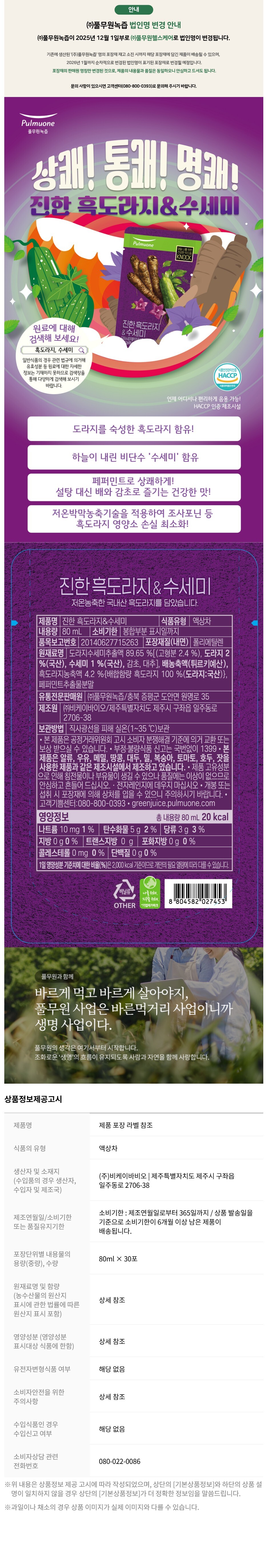 풀무원 진한 흑도라지 수세미 세트 80mlX30포