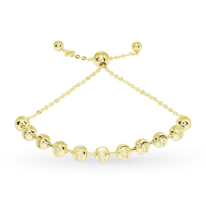 - Esta pulsera es el complemento perfecto para tus joyas de plata de ley y se puede comprar como pulseras de cadena para mujeres y pulseras de cadena para adolescentes. Esta hermosa pulsera ajustable para mujer muestra una cadena de barra de cuentas pulidas de 4.75 mm. Está hecho de plata de ley 925 chapada en oro amarillo y se ajusta para adaptarse a tu muñeca de 3 a 9 pulgadas de largo. 100% libre de níquel.