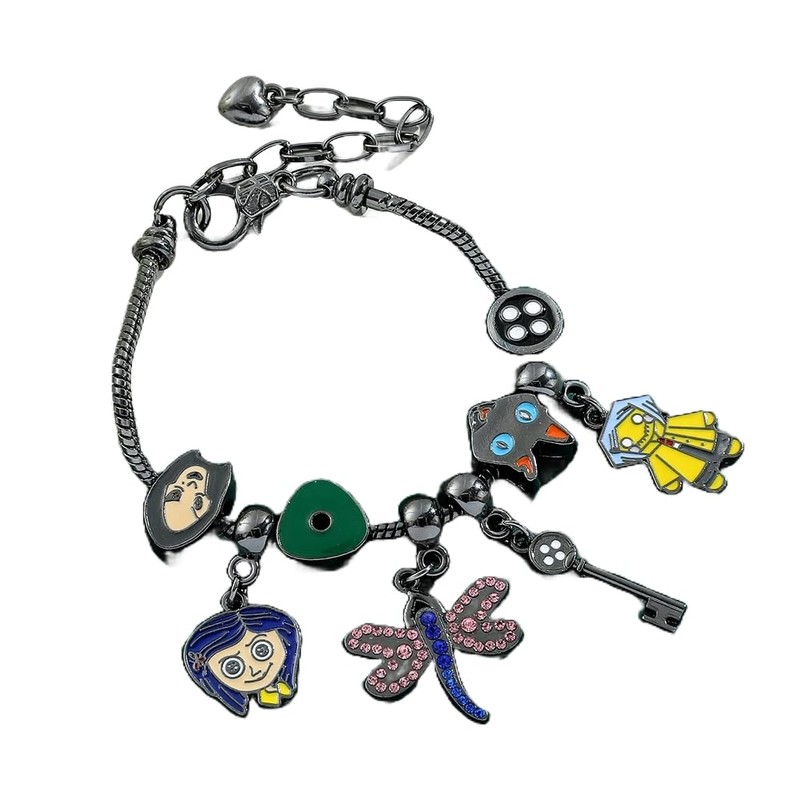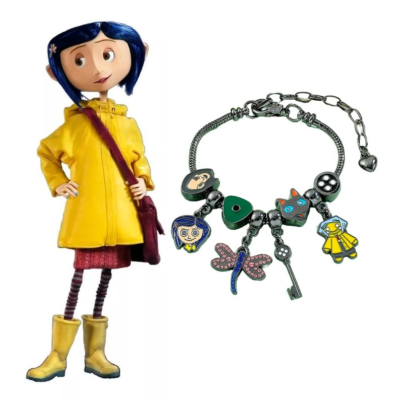 - Pulsera Negra Muñeca Coraline Libelula Gato Llave Boton