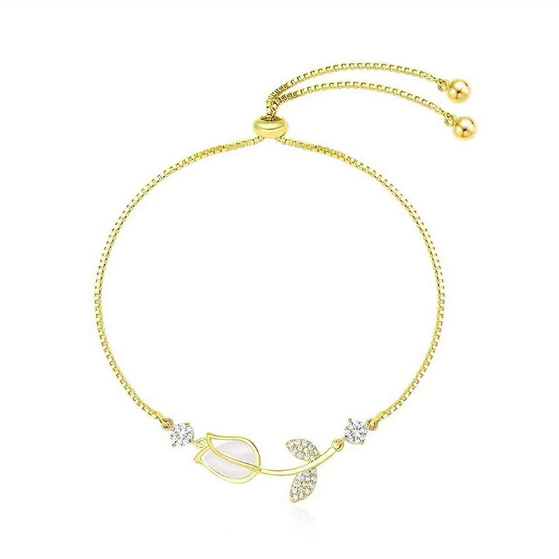 Pulseras para Mujer QWONEKOU,Pulsera Brazalete Tulipanes,BFF Amistad Señoras Pulsera,Regalo de Recuerdo Clásico – Joyería de Moda,Regalos Cumpleaños, San Valentin Regalos,Ajustable,30012G