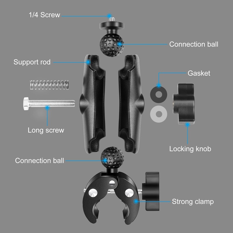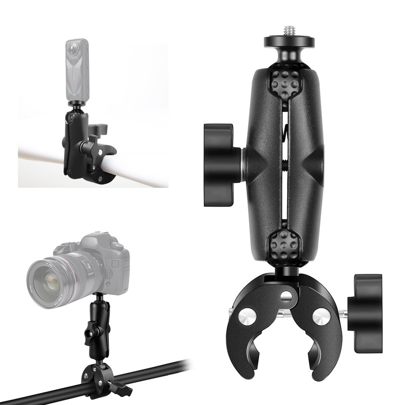 PULUZ 1/4 Zoll Schraube Super Kamera Halterung Klemme, Doppelkugelkopf Magic Arm Klemme mit Adapterfuß für Motorrad, Fahrrad, Querstangen Webcam, Kamera, Regenschirm, Desktop, Lichtständer
