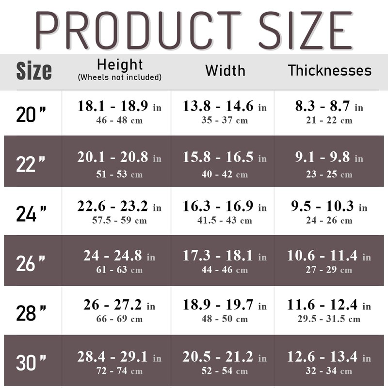 - 28 inch Clear Suitcase Protector Cover: Suitable for 28 inch travel suitcase, there are more suitable options when choosing a protective cover for your luggage. Our products have a certain amount of elasticity, but for your shopping experience, please measure the size of your suitcase (excluding the height of the wheels) and check the size chart before purchasing.