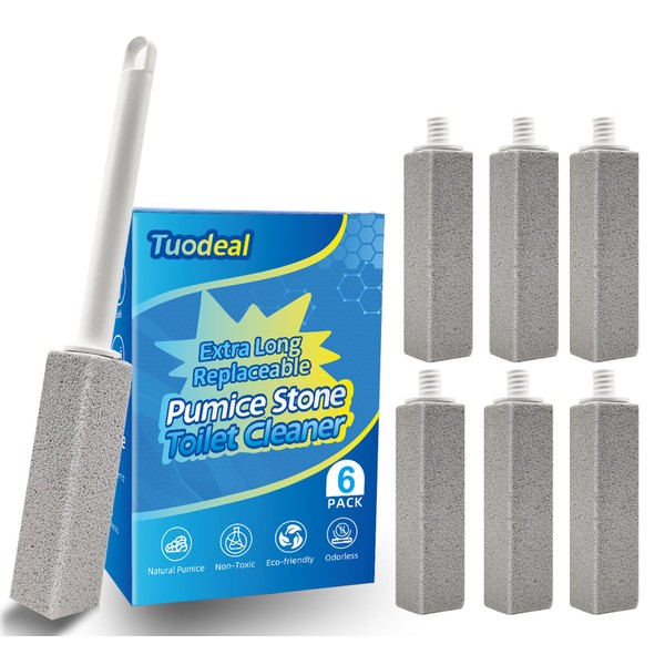 Pumice Stone Toilet Bowl Cleaner with Extra Long Handle - Effortlessly Removes Hard Water Stains, Limescale, Calcium, Rust from Toilets, Bathtubs, Grills, Pools & Sinks, 1 Wand+6 Pumice Stones