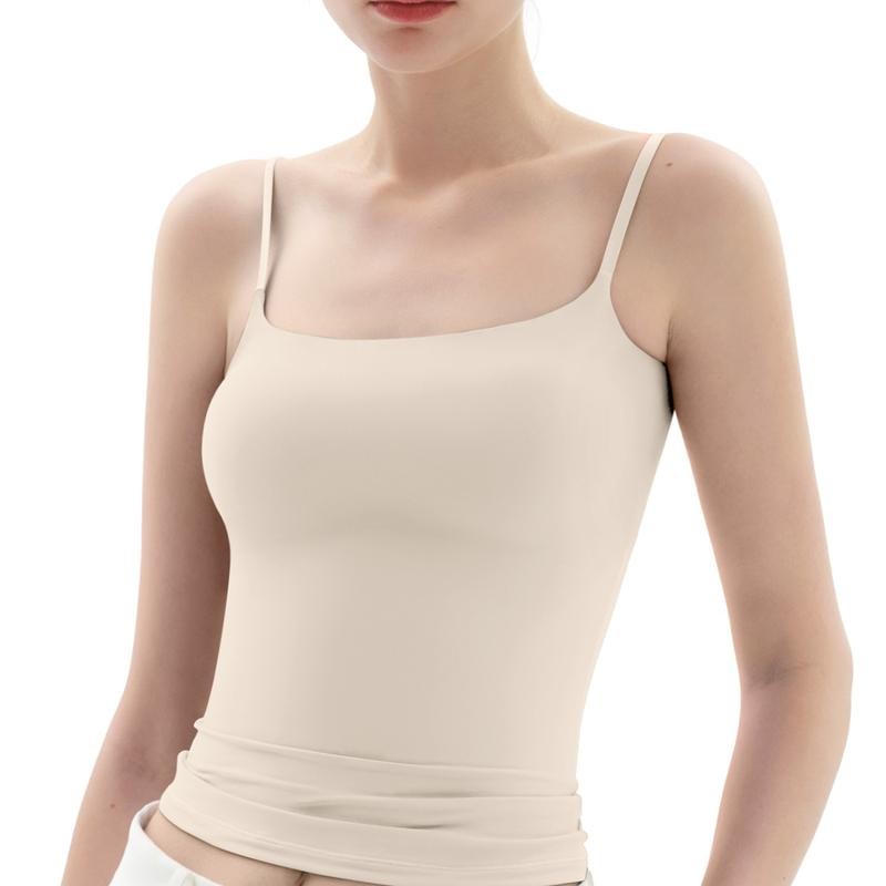 PUMIEY Women's Square Neck Tank Top Adjustable Spaghetti Straps Sleeveless Basic Tops Sharp Collection tankair tanktop Womenswear Tube Minimalist Comfort Short Lady Underwear Casual Slim:_Beige_XS