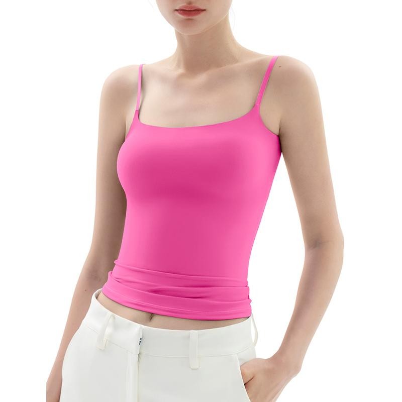 PUMIEY Women's Square Neck Tank Top Adjustable Spaghetti Straps Sleeveless Basic Tops Sharp Collection tankair tanktop Womenswear Tube Minimalist Comfort Short Lady Underwear Casual Slim:_Blush_M