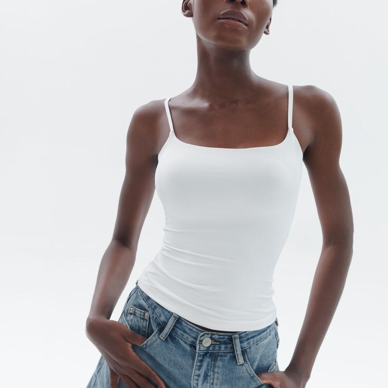 PUMIEY Women's Square Neck Tank Top Adjustable Spaghetti Straps Sleeveless Basic Tops Sharp Collection tankair tanktop Womenswear Tube Minimalist Comfort Short Lady Underwear Casual Slim:_Pool_M