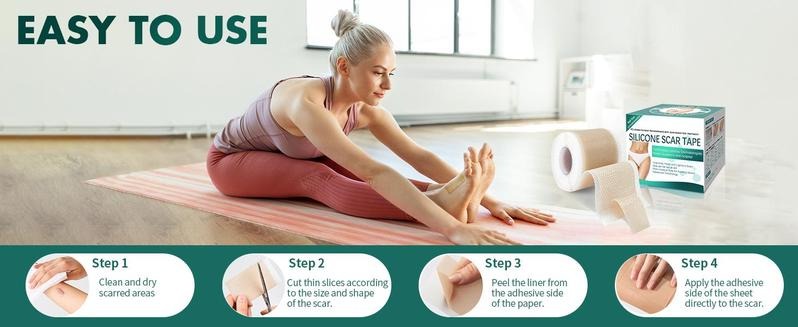 Our Scar Sheets and Scar Cream are crafted from breathable, non-irritating, and non-sticky silicone, ensuring gentle care for your skin. The lightweight, refreshing texture absorbs quickly, allowing you to wear it during the day without disrupting your routine.
