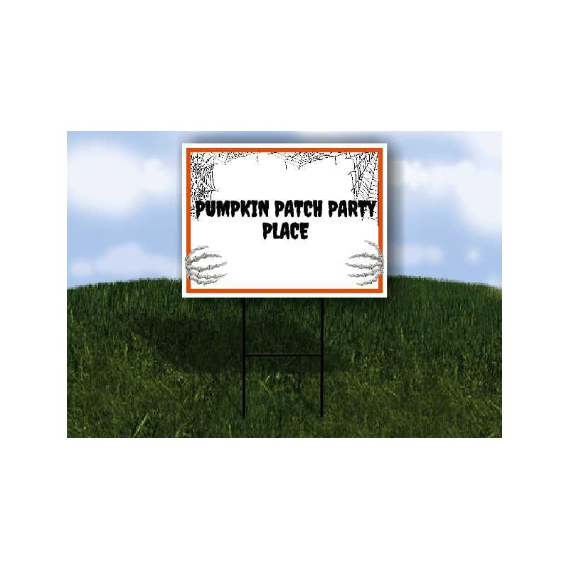 PUMPKIN PATCH PARTY PLACE Halloween Skeleton No arrow 1 Single Sided 18x24 in Yard Road Sign w/stand