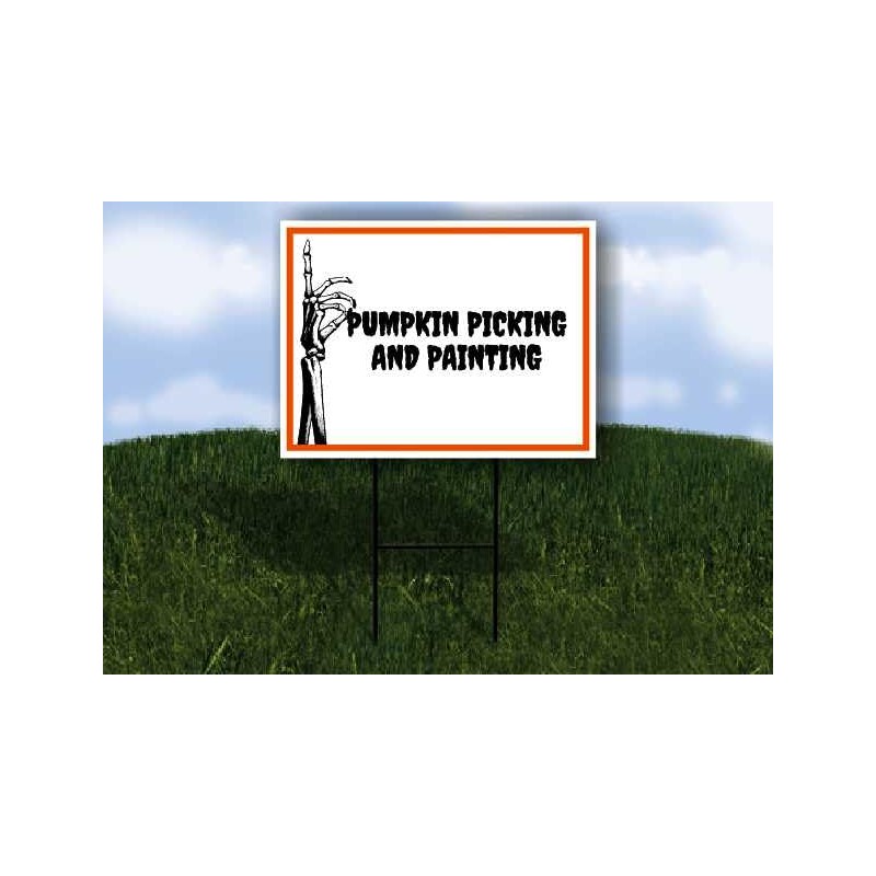PUMPKIN PICKING AND PAINTING Halloween Skeleton UP ARROW 1 Single Sided 18x24 in Yard Road Sign w/stand