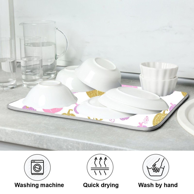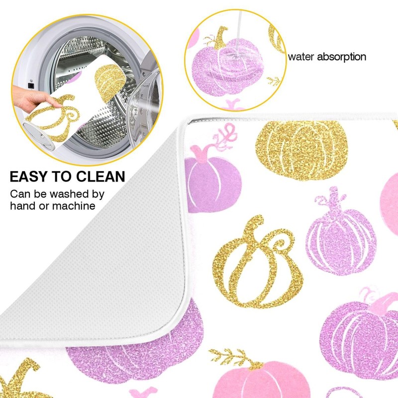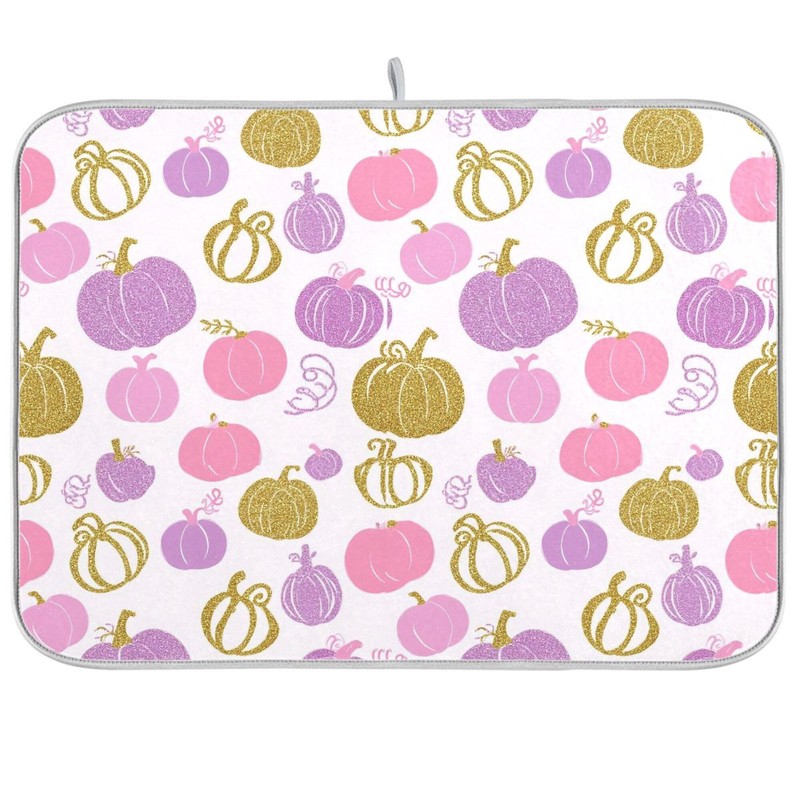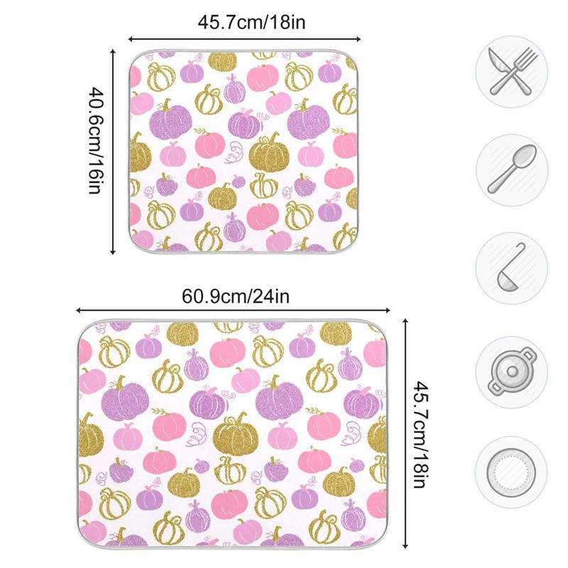 Pumpkin Pink Purple Dish Drying Mat for Kitchen Countertop 18x24 Fall Rectangle Large Drying Mat Reusable Quick Dry Dish Sink Absorbent Mats Dishwasher Easy Clean Decorative Home Decor Essentials