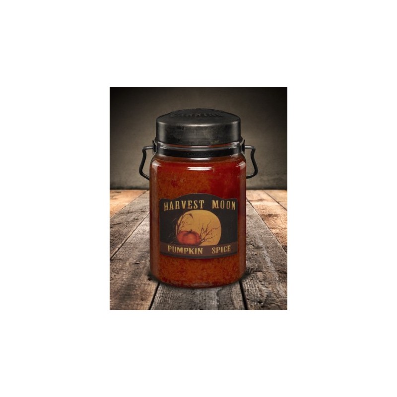 McCall's Country Candles - 26 Oz. Pumpkin Spice has a striking blend of nutmeg, cinnamon, orange and cloves. This autumn favorite will knock you off your feet. Perfect for warming up those crisp fall evenings. THIS IS THE SAME FRAGRANCE AS FARMER'S MARKET. McCall's Candles include reproductions of hand- painted designs by artist Dee McCall that add detail and charm to a unique and one-of-a-kind gift line. McCall's Candles are poured at the optimal level of fragrance to ensure an even, long-burning, highly scented candle from beginning to end. McCall’s takes pride in taking the time to use only the finest fragrances and wax for the best quality candles. Although McCall's wicks are metal cored, they are zinc, not to be confused with lead. McCall’s Classic Jar Candle is a unique clear glass jar that features a rustic metal lid embossed with the McCall's Country Canning logo. This candle is also unique because of it distressed metal handle, which attaches securely to a distressed metal band around the neck of the jar. Approximate burn time 120 to 160 hours.