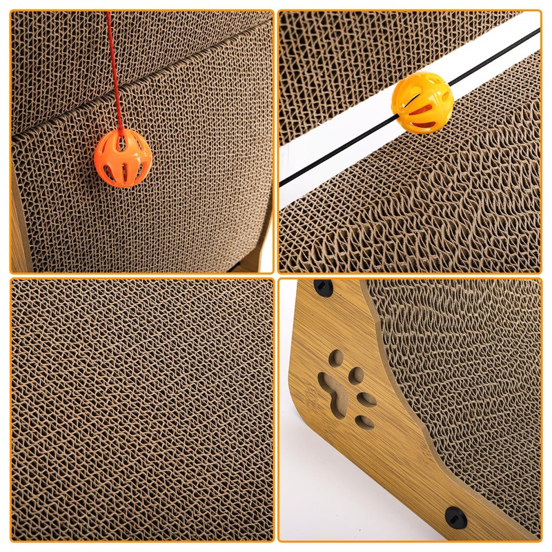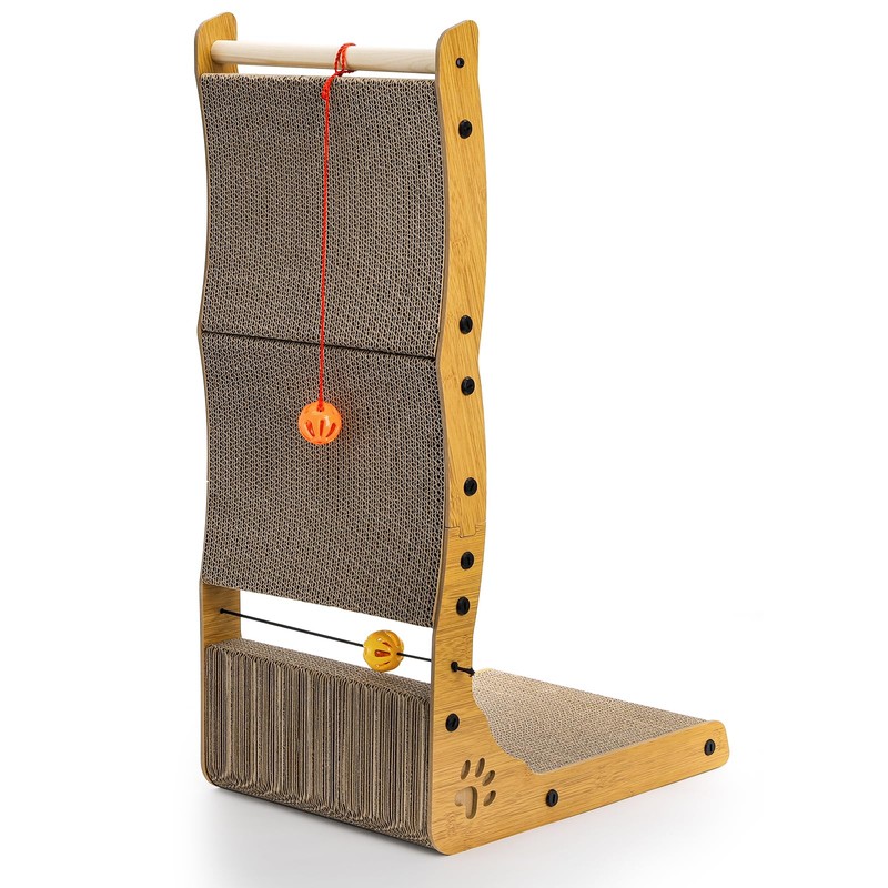 - Funny Toys & Paw-Print Design: The plywood edges features adorable paw prints, very cute and funny. This tall standing cat scratcher is also designed with 2 dangling ball toys at the top and bottom, keeping indoor cats happy and combining exercise and claw care in one curved scratching ramp.