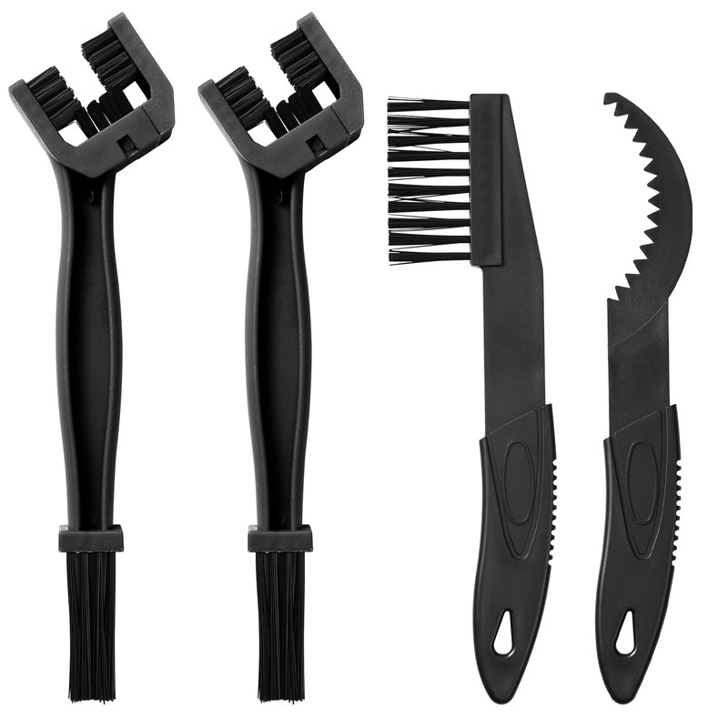 - 【What You Get】4PCS bike cleaning kit includes 2 pcs Bicycle Cleaning Chain Brush + 1 pcs Sprocket Scraper + 1pcs Sprocket Brush. Material: Plastic.
