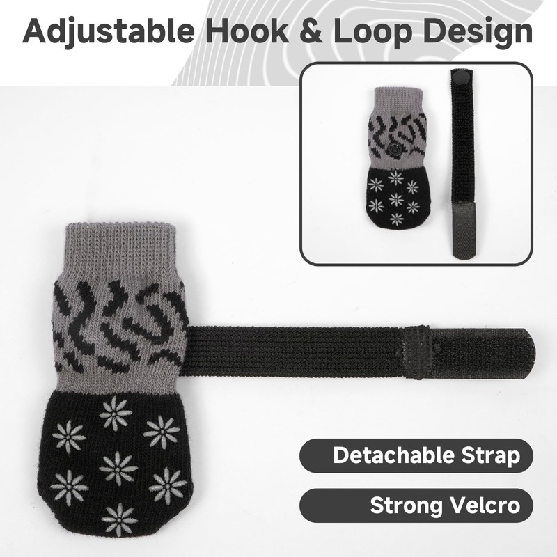 • 【Anti-Fall Off】You can see that there is an adjustable and detachable strap on each sock for cats paws, you can adjust it according to your dog's feet to keep your dog's paws tightly wrapped and remove it when you need to wash the socks, very convenient to use.