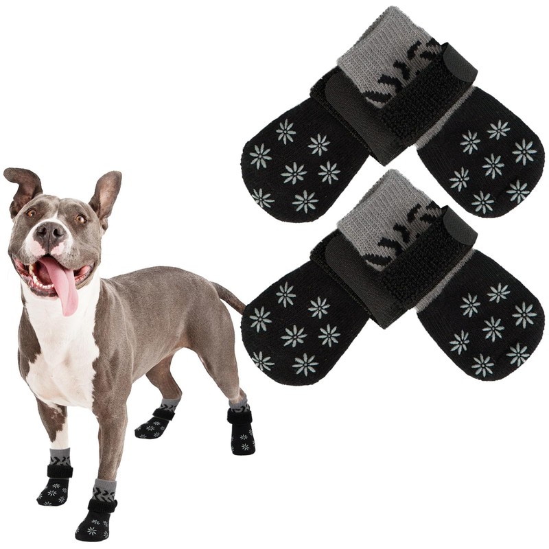 PUMYPOREITY 2 Pairs Socks for Dogs to Stop Licking, Dog Gripper Socks for Hardwood Floors Dog Paw Bandage Large Dog Socks with Grips Waterproof Socks for Dogs Paw Pad Bandage(Gray-black, L)