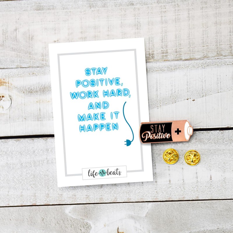 - FUNNY PINS WITH CUTE PUN - These enamel pins from LifeBeats feature a battery with a punny saying, “Stay Positive”, bringing a quirky touch to any outfit or accessory. They make great pins for clothes, pins for bags, and even lapel pins!