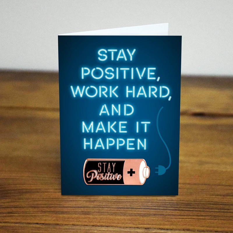 Pun Enamel Pin by LifeBeats | Cute Pin for Clothes, Jackets, Hats, Bags, and Lanyards | Hat Pin Comes with a Greeting Card | Lapel Pin with Sturdy Backing, (Stay Positive Battery)