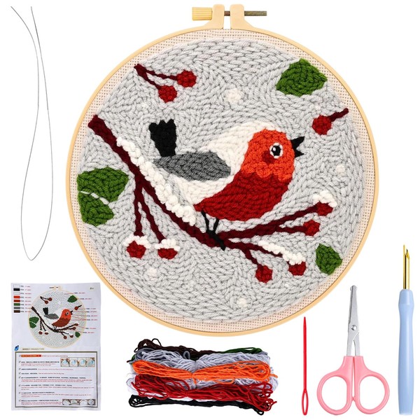 - Vibrant & Eye-Catching Design: Our punch needle kit features a captivating cartoon style, adorned with adorable red bird, tree branches, and snowflakes. This delightful design instantly grabs attention and adds a touch of whimsy charm to any space, making it a perfect decorative piece for homes, bedrooms, or offices.