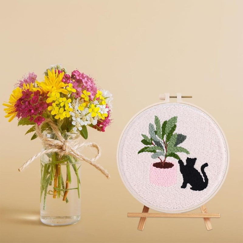 Punch Needle Kits For Kids Adults Beginner,Black Cat Embroidery Starter Kit,Rug Hooking Beginners,Handcraft Hoops,Flowers Plants Pattern Kits, Rug Beginner,Diy Handcraft Tools Set