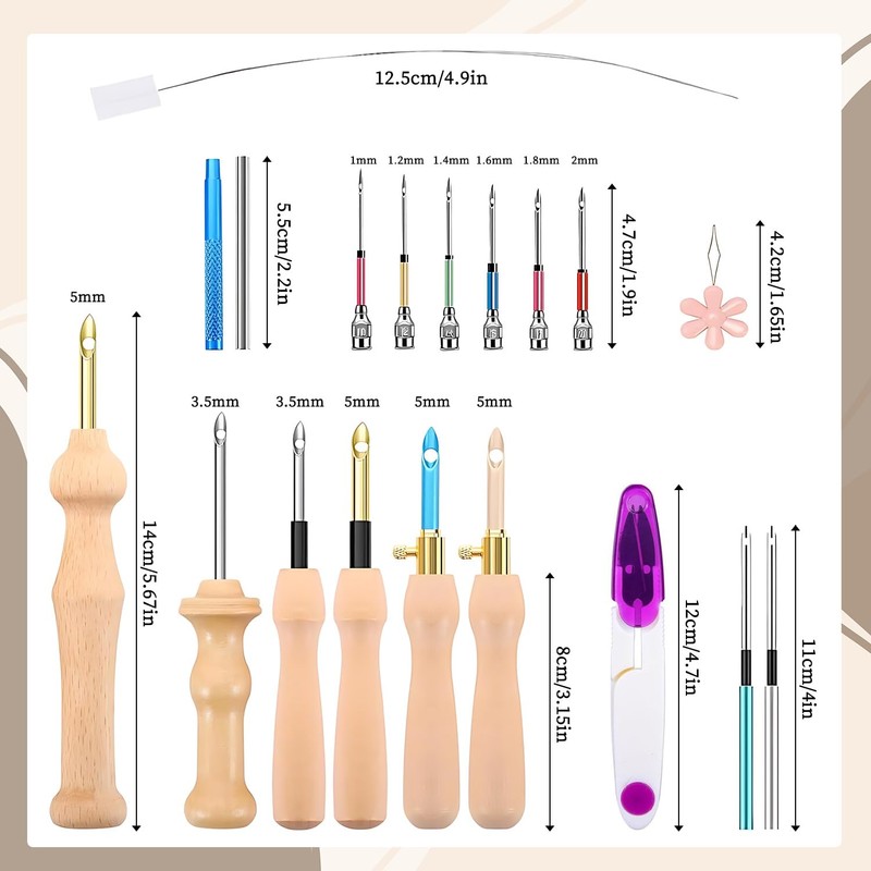 • Product Included: You will receive a set of punch needles, including 4 wooden-handled needles, 2 adjustable wooden-handled needles, 8 poke needles in different sizes, 4 needle threaders, 2 stainless steel pipe handles, and 1 scissor