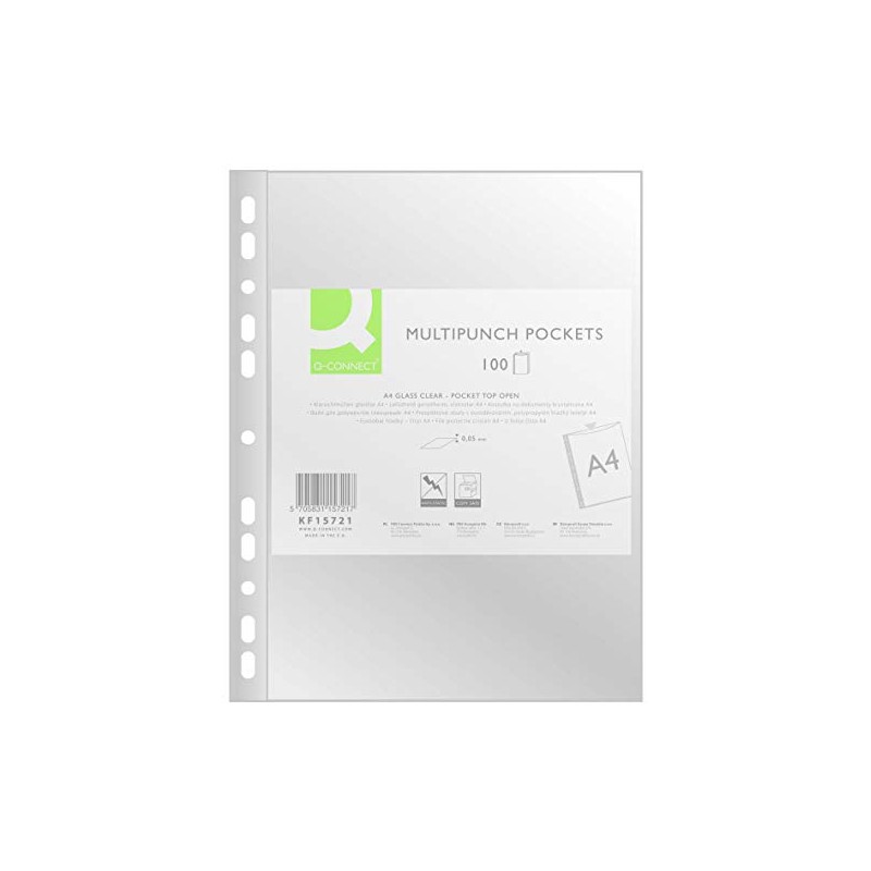 Punched Pockets Q-Connect, Polypropylene, A4, Crystal, 50 Micron, Pack of 100