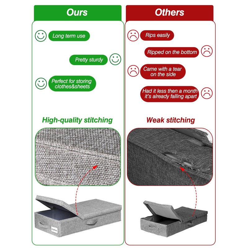 - STURDY STRUCTURE & STURDY HANDLES: 3 Reinforced sewn-in handles make it easy maneuverability and convenient for you to carry and pull out from under the bed; handy bins make excellent blanket organizers and storage; Lasts longer than underbed storage containers plastic; Keep your bedroom neat and tidy with storage bins with lids that fit your room's existing decor and theme