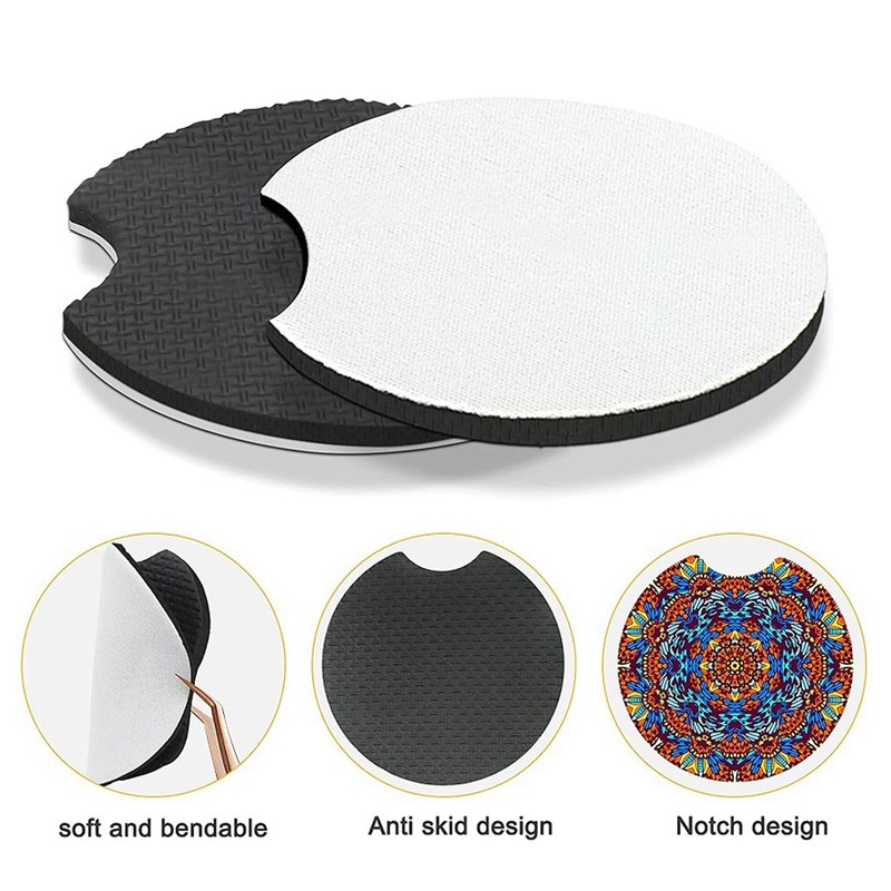 - It is Easy to DIY: Simply transfer the design or image you want with a heat press to create beautiful personalized cup coasters. There is a convenient notch on the side of the car coasters, which can be easily removed from the car cup holders for cleaning.