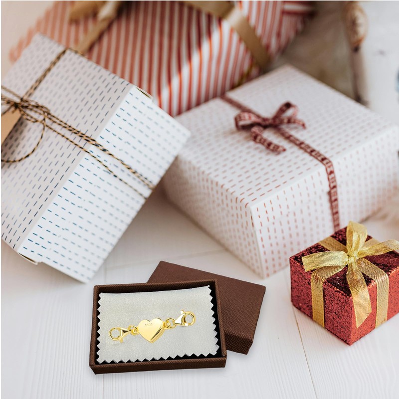 Puniama 925 Sterling Silver Magnetic Necklace Clasps and Closures – Heart-Shaped Double Lobster Clasps, Necklace Layering Clasp and Magnetic Extender for Jewelry Making and Bracelets, Gold