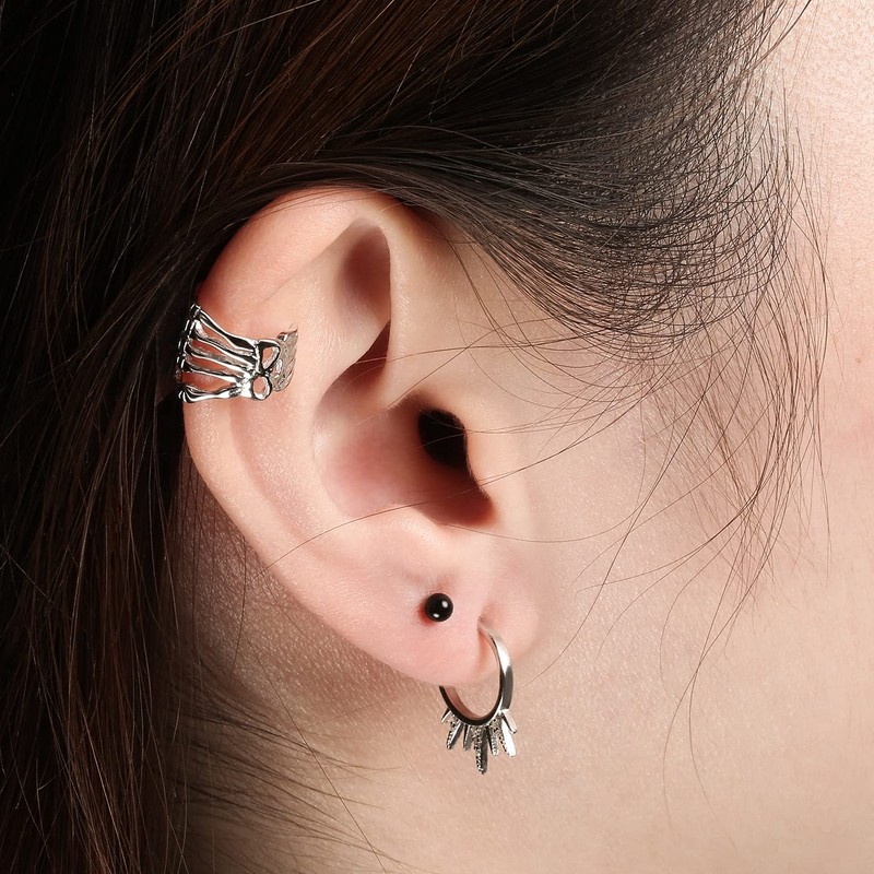 - Infuse uber cool, rocker style into your everyday look with these striking, beautifully designed .925 silver half hoop earrings. Highlighted by an edgy, spike detail design on the underside of the hoops, sparkling with cz accents.