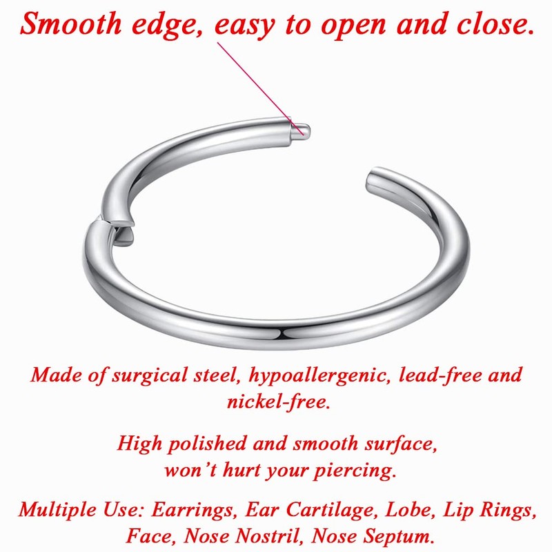 - ✿[Using]: Multiple used as tragus earring, helix earring, nose rings, septum jewellery, nose piercings, lip rings, conch helix daith jewellery, hoop earrings for women men, etc. Very versatile to suit your usage needs.
