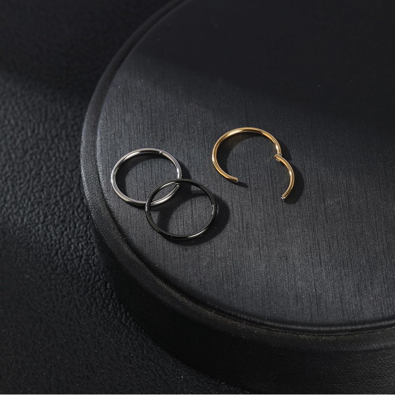 PunkTracker Titanium Surgical Steel Hinged Nose Rings Hoop 20G 18G 16G Septum Clicker Lip Rings Nose Helix Tragus Daith Rook Cartilage Earrings