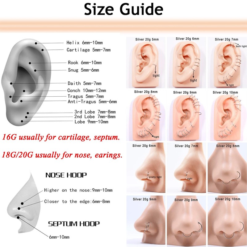 - ✿[Using]: Multiple used as tragus earring, helix earring, nose rings, septum jewelry, nose piercings, lip rings, conch helix daith piercing jewelry, ear lobe earrings, various to suit your usage needs.