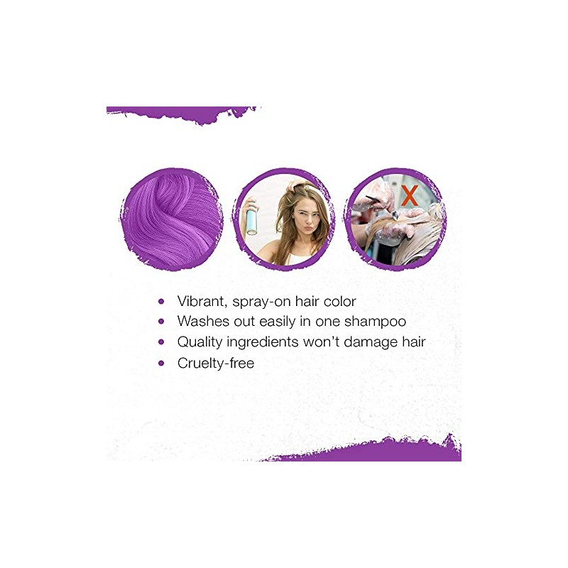 - Vibrant Spray-On Temporary Hair Color: Get majestic purple and vibrant hair without commitment! Amp up your style with a panther purple hue that easily washes out in one shampoo. Can be used for all-over color or to create accent streaks.
