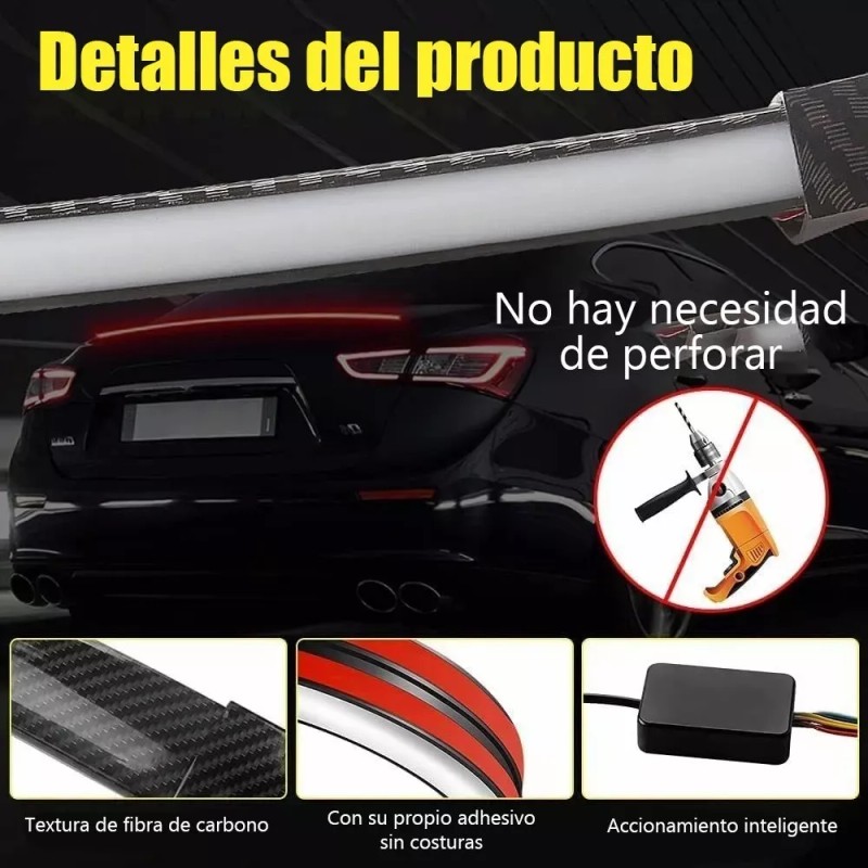 PUNKZZ Alerón Trasero Cajuela Led Universal Fibra Carbon Cola Luz A