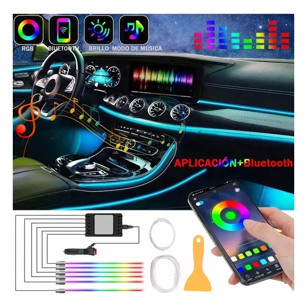 PUNKZZ Tiras De Luces Fría Interior Para Auto Luz De Neón Rgb