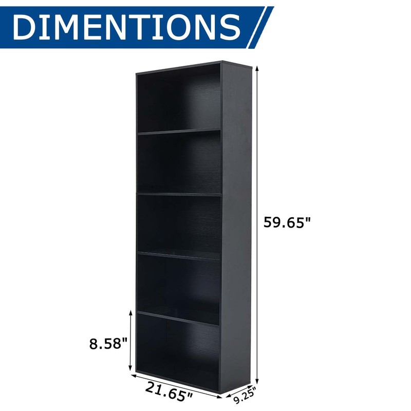 Puntogen Black Wooden Book Shelf, 59.7" Tall Narrow Bookshelf with Open Storage Shelf, 5-Tier Open Shelf Bookcase for Office, Living Room
