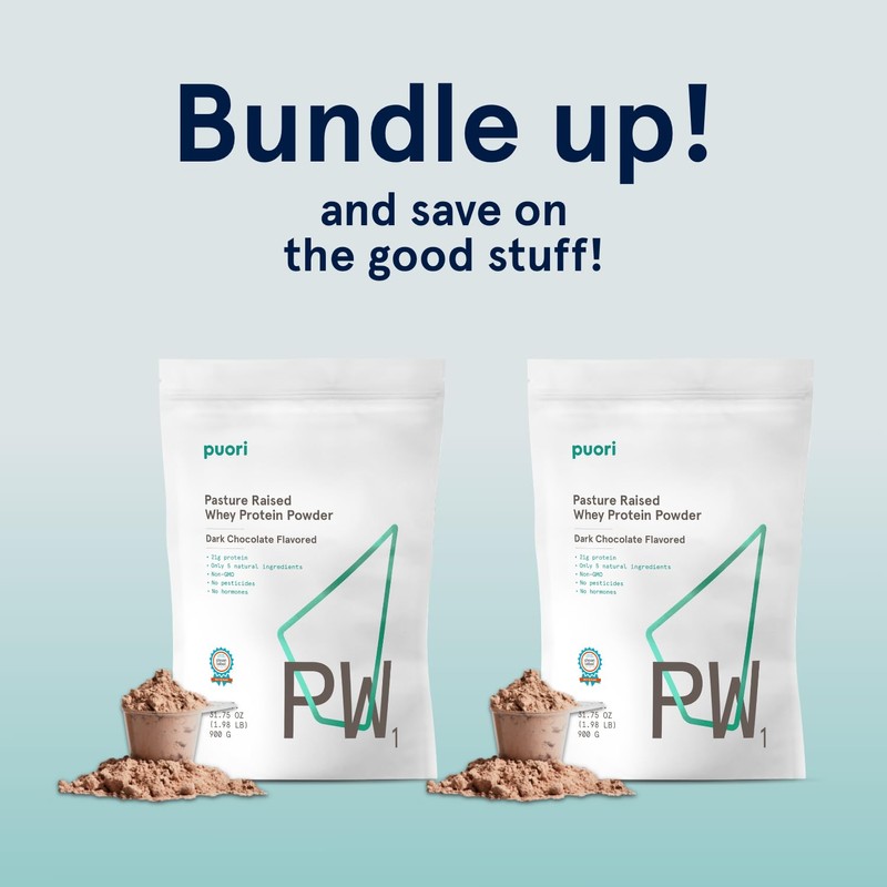Puori Puori Whey Protein Powder - Dark Chocolate - PW1 Pasture Raised, Grass-Fed & Non-GMO - 100% Natural and Pure for Muscle Growth - 21g Protein 1.98lbs - Gluten-Free