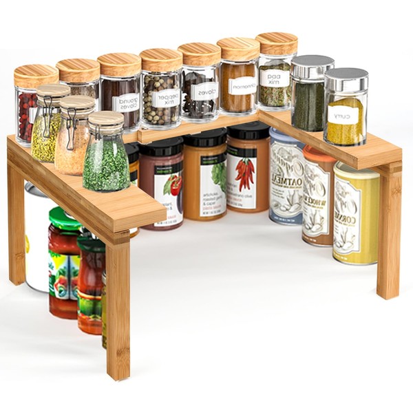 - Stable and durable: Our spice rack is made of 100% solid bamboo to ensure its durability. It will not bend or rust as easily as other metal spice rack. Thanks to the multiple polishing process and paint treatment, its surface and edges are smooth and moisture-resistant, easy to clean, just wipe it with a damp cloth. Perfect for kitchens.